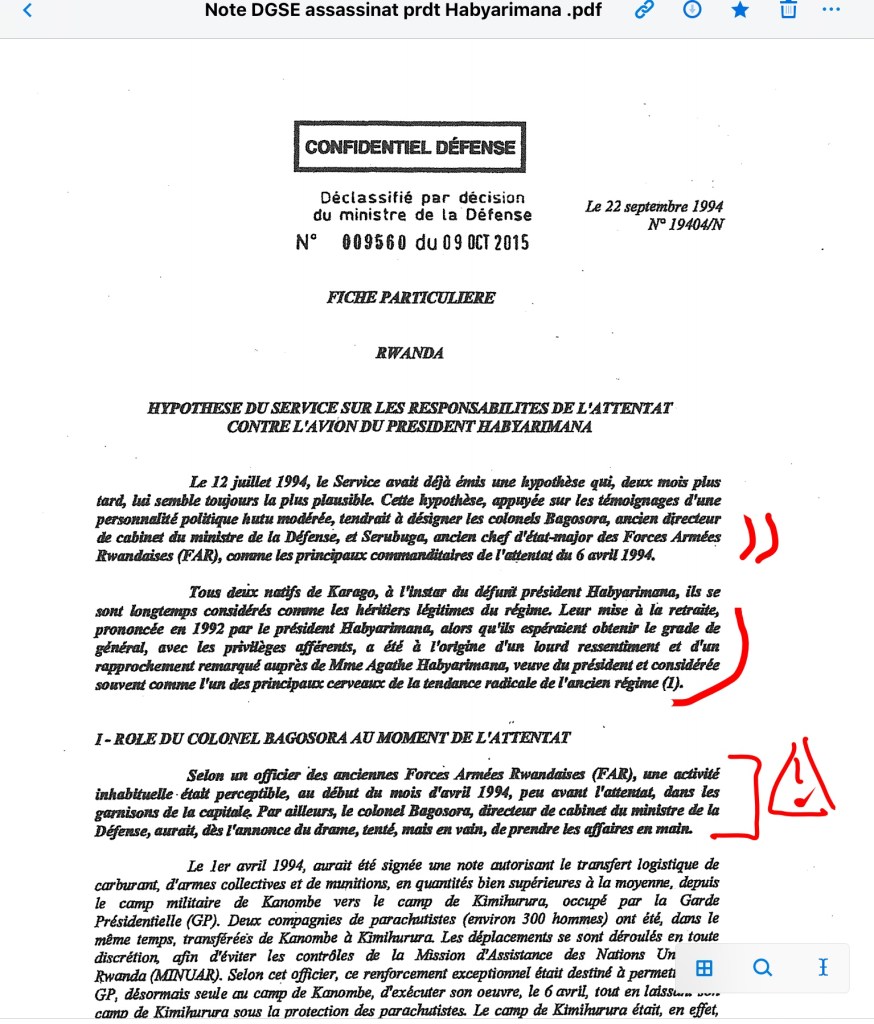 Il n’est pas imaginable que la DRM ait fourni de fausses preuves de son propre fait. Elle n’a pu agir ainsi que sur ordre, pour continuer à camoufler la géopolitique délirante de l’Elysée qui consistait à soutenir les génocidaires du Rwanda. A moins que ce ne soit pire encore, camoufler l’implication de la France dans l’assassinat du président Habyarimana ?
