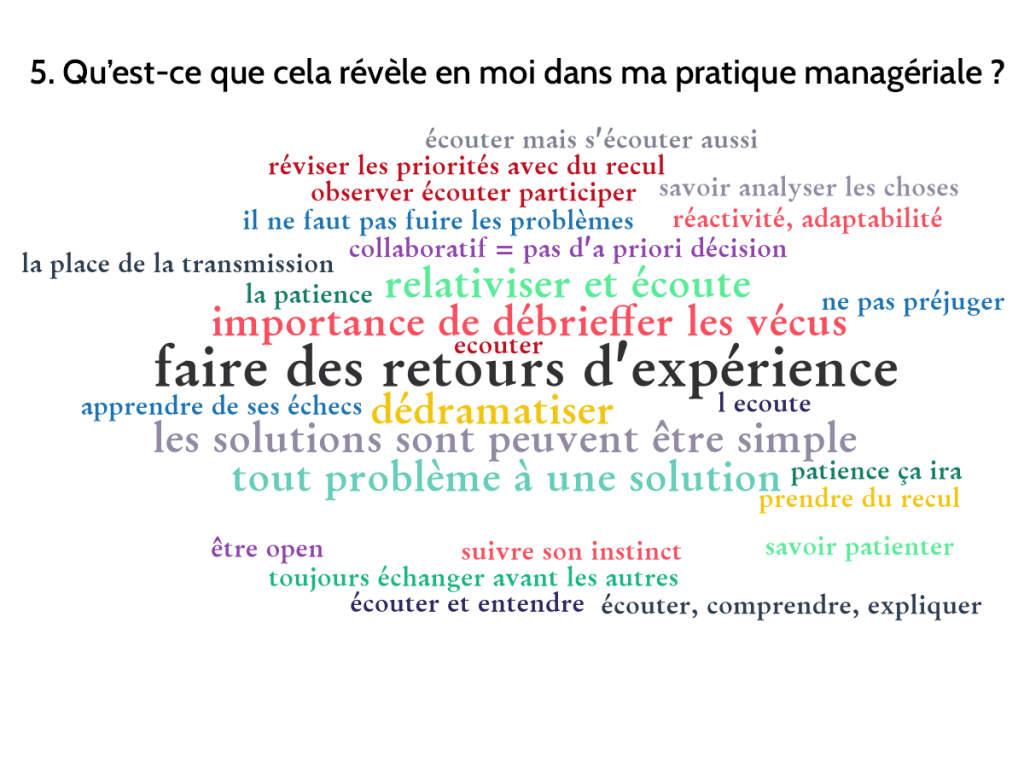 Isabelle les conduit alors sur cet aspect si particulier de leur métier de manager, pour les questionner sur les spécificités de cette situation et la nécessité de la gérer en tant que telle, comme une crise et surtout pas comme un événement de plus dans le courant de leurs affaires « normales ».