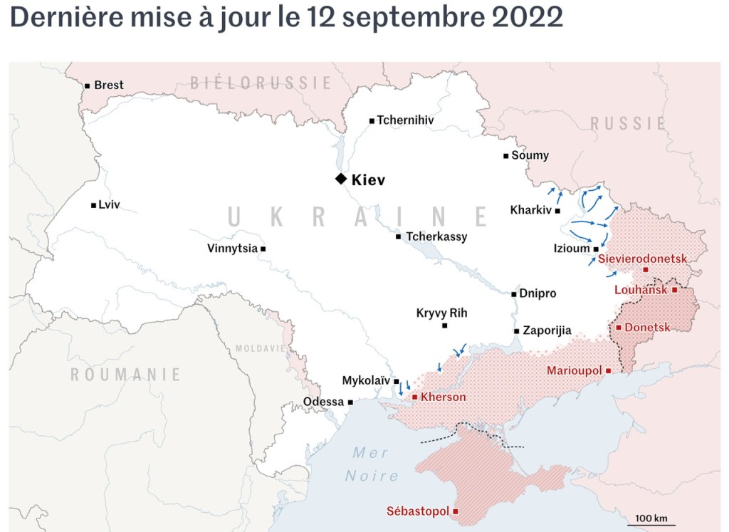 Depuis moins d’une semaine, les forces ukrainiennes ont lancé une seconde contre-offensive dans le Nord-Est du pays (région de Kharkiv), tandis qu’une opération laborieuse dans le Sud (région de Kherson) avait attiré de trop nombreuses forces russes, en fragilisant le reste du front.