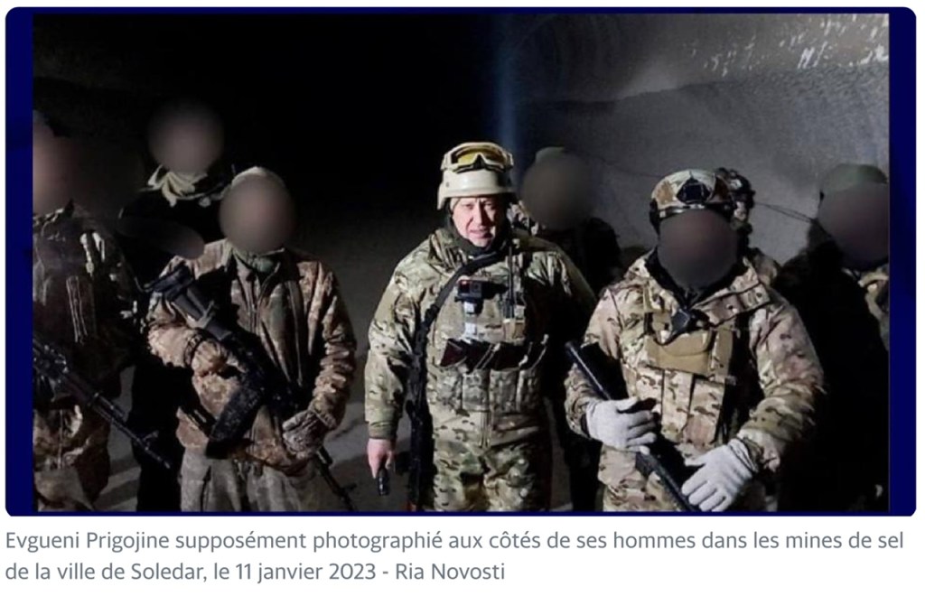 Prigojine, dirigeant de la milice Wagner, se met en scène dans les soi-disant mines de Soledar, mais il n’est sans doute pas sur le front…
