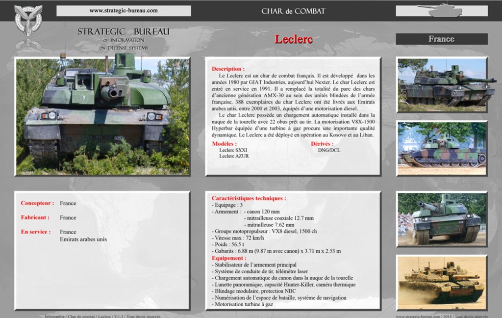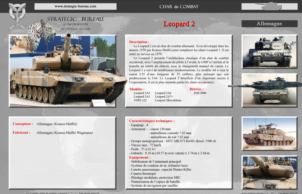 « Fabriqué en Allemagne, le char Leopard 2 a fait l’unanimité en Europe, à l’exception de la France qui n’a pas voulu le reconnaître et a préféré construire un concurrent inutile, le char Leclerc, guère plus performant mais bien plus coûteux et limité en nombre, quelques centaines d’exemplaires quand le Leopard 2 a été construit en milliers. »