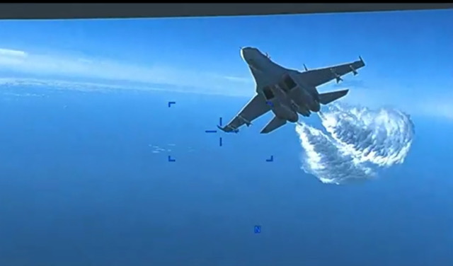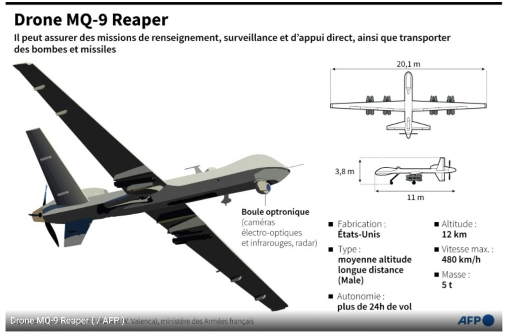 Mardi 14 mars, un drone américain Reaper s’abîme en mer après avoir été endommagé par deux chasseurs russes Su-27.