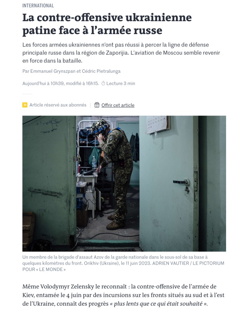 Lire aussi un autre point de vue : l’offensive ukrainienne est-elle un échec ? Par Michel Goya