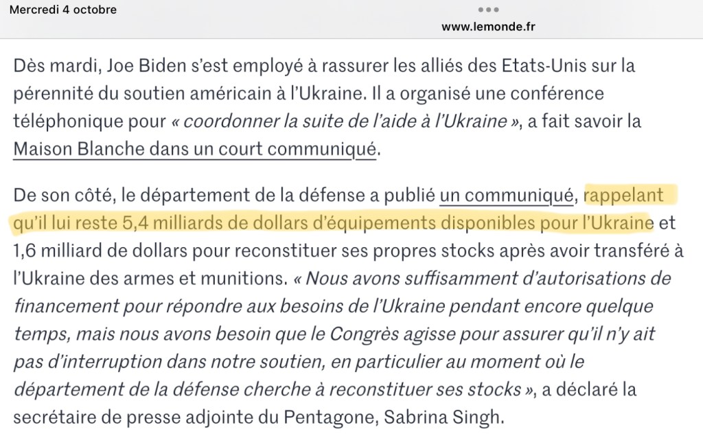 Alors, souhaitons qu’ils tiennent suffisamment longtemps…le temps que le nouveau budget soit approuvé aux États-Unis ! Et que d’ici-là ils seront en mesure de s’armer par eux-mêmes !