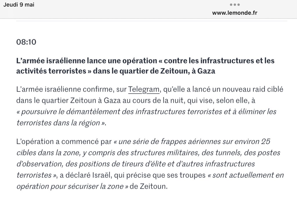 Sur le plan militaire, la manœuvre d’information n’a pas plus de sens puisqu’elle prévient l’organisation visée – le Hamas – de la zone que ses miliciens devraient quitter…