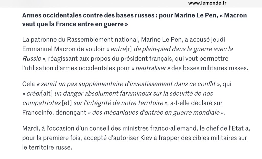 La question se pose dès lors de savoir si le problème du RN n’est pas plutôt que Vladimir Poutine soit mis en échec ?