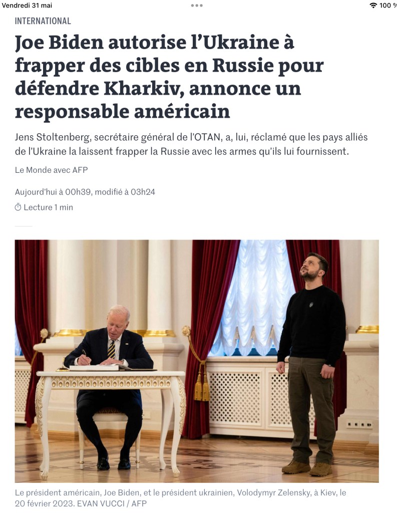 Guerre en Ukraine : après un long débat, l’administration Biden autorise Kiev à frapper le territoire russe (Cedric Pietralunga dans Le Monde)