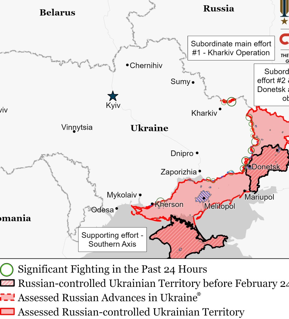 Mais depuis début mai, la Russie de Poutine attaque aussi au Nord de l’Ukraine dans la région de Kharkiv à partir de son propre territoire, probablement dans une opération de diversion obligeant les forces ukrainiennes à disperser leurs forces quand elles essayent déjà de contenir la lente mais constante poussée russe sur le front de l’Est.