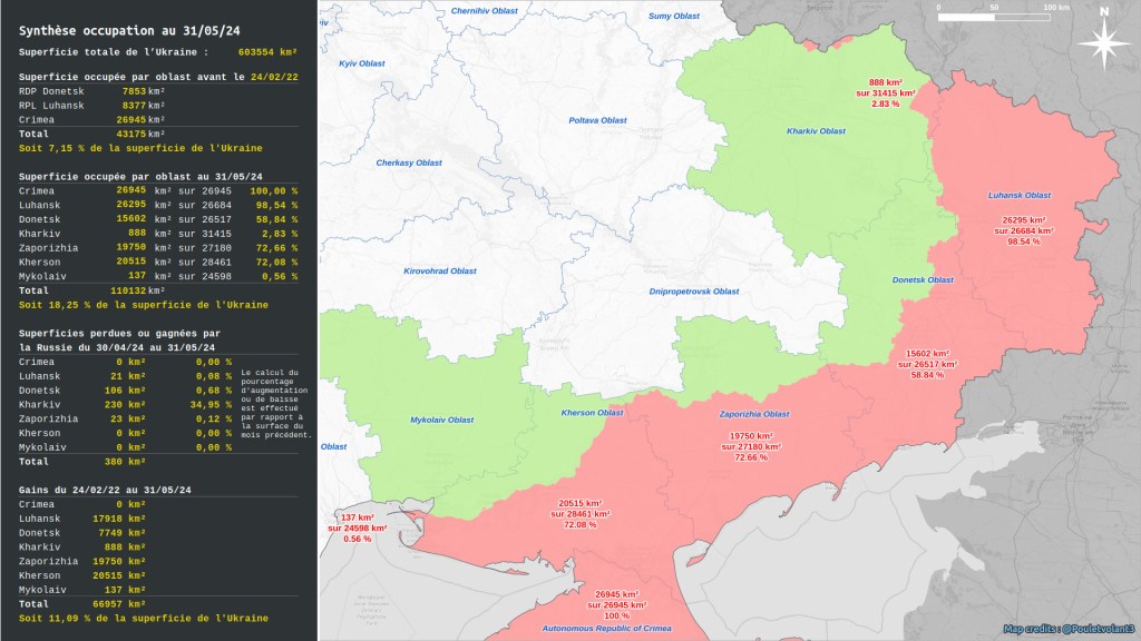 Bilan des territoires ukrainiens envahis par la Russie de Poutine (18,5%) par @Pouletvolant3