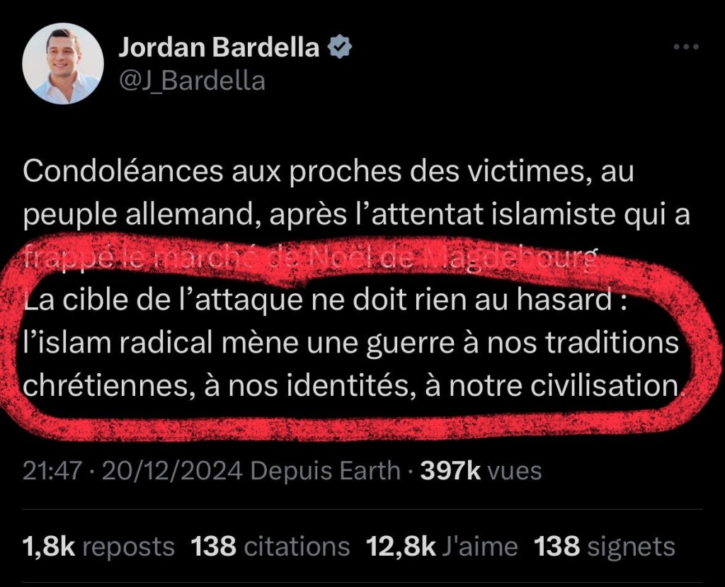 Ce drame à Magdebourg doit nous interroger sur ces partis et sur ces réseaux sociaux qui font la promotion de la haine de l’autre et du chaos pour imposer leur ordre.