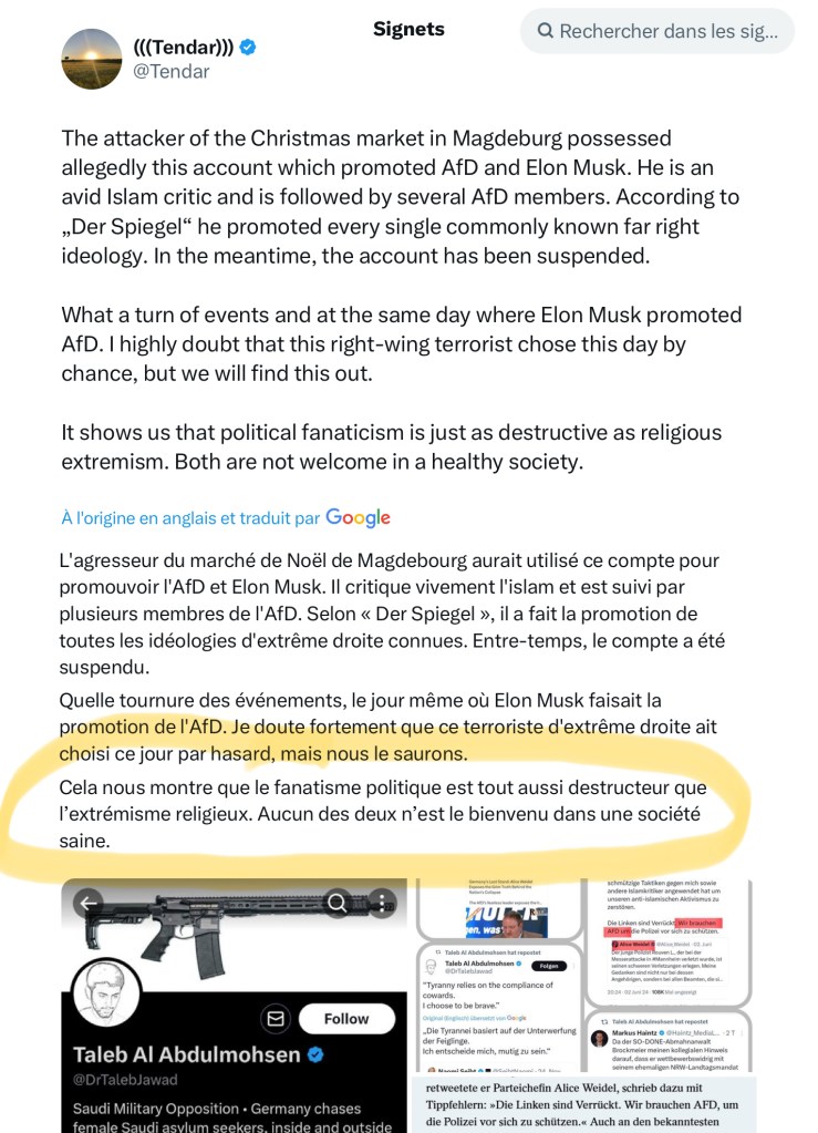 12 commentaires sur “La tuerie sur le marché de Magdebourg nous rappelle à… la modération