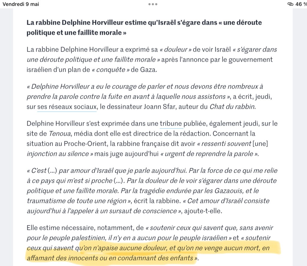 Une telle mobilisation serait essentielle pour stopper aussi la guerre que mène Benyamin Netanyahou avec son gouvernement extrémiste à la tête d’Israël aujourd’hui. Celui-ci met à feu et à sang le Proche-Orient, en bombardant sans plus aucune limite (et avec des bombes américaines) la bande de Gaza pour finir de la dévaster, mais aussi la Cisjordanie pour s’en emparer, le Liban, la Syrie et le Yémen… Ne laissons pas la guerre en Ukraine nous aveugler, lisons la rabbine Delphine Horvilleur.