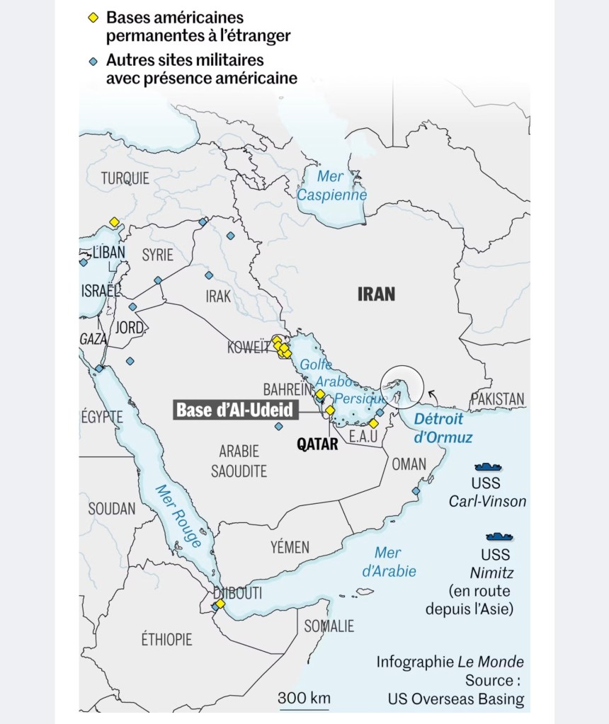Quelques heures auparavant, les Iraniens ont sauvé la face avec une attaque chorégraphiée et sans effet contre une base américaine au Qatar le 24 juin, une attaque qui n’a fait aucune victime elle aussi, ni d’ailleurs aucun dégât.