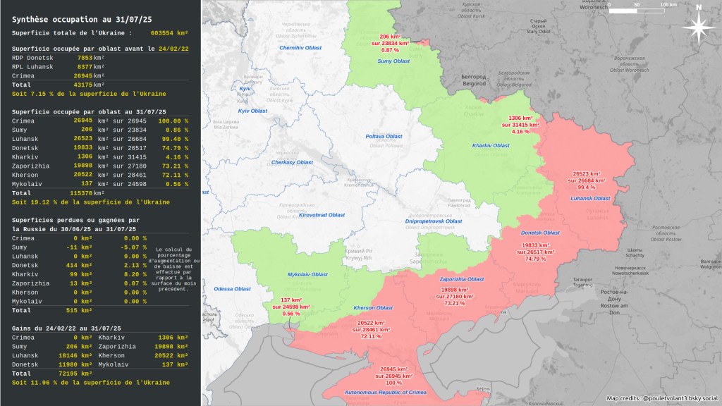 Voyons voir ; les frappe sur les infrastructure pétrolière Russe on repris après avoir fortement diminuer pendant plusieur mois, pas de perçée Russe en vue pour le moment, sans doute entravé par les frappes Ukrainniennes dans la profondeur , même si en toute logique l’offensive perdurera au moins jusqu’au mois d’octobre et que beaucoup d’événement peuvent se produire d’içi là… couplé à divers offensive médiatique en Géorgie et Azerbadjan…