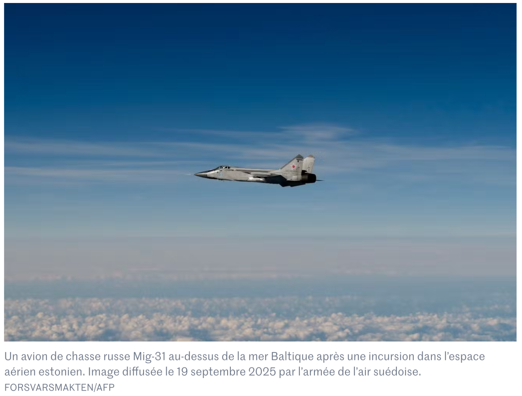 Le jour précédent, le 19 septembre, trois chasseurs russes MiG 31 pénétraient pendant une dizaine de minutes dans l’espace aérien de l’Estonie. Certes, cela ne constitue pas un raid contre ce pays de l’OTAN, mais cet incident illustre bien le mépris de l’armée russe pour la défense européenne qu’elle considère comme dénuée de toute volonté de se battre en réalité.