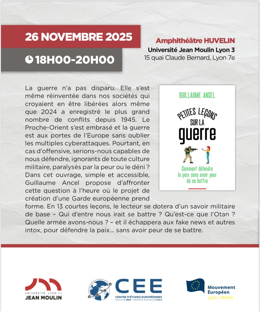 J’interviendrai sur la capacité à se battre pour défendre la paix, la guerre en Ukraine et la défense européenne dans une conférence ouverte au public