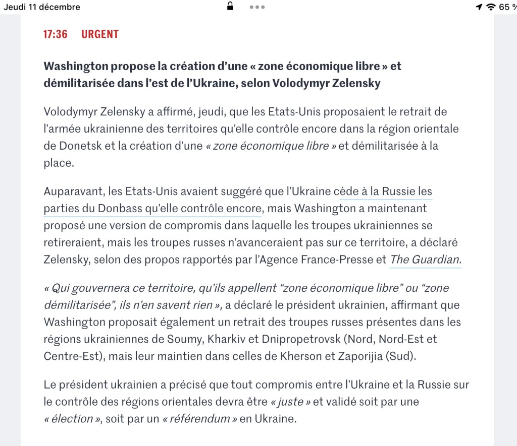 Ce n’est pas la première concession de l’Ukraine, le président Ukrainnien s’étant même dit près à céder ça place si cela pouvait mettre fin à la guerre et garantir la sécurité de l’Ukraine…