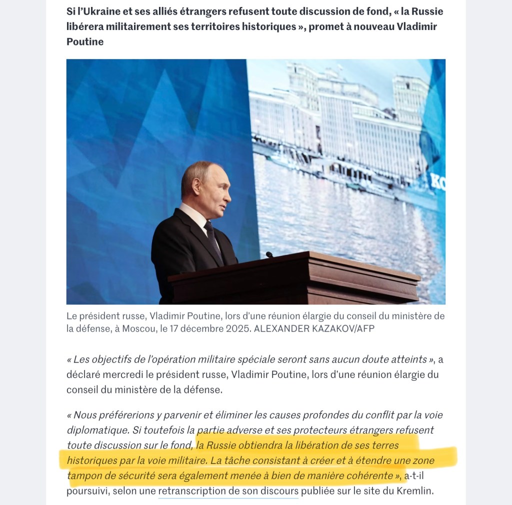La réalité nous rattrape avec cette saloperie de guerre contre l’Ukraine, et, qu’un accord soit arraché ou pas par Donald Trump – intenses négociations ce week-end du 20 décembre en Floride – ne changera rien à une réalité aujourd’hui installée : les pays européens sont menacés par un Empire qui utilisera tous les moyens à sa disposition pour nous confronter et nous imposer sa volonté.