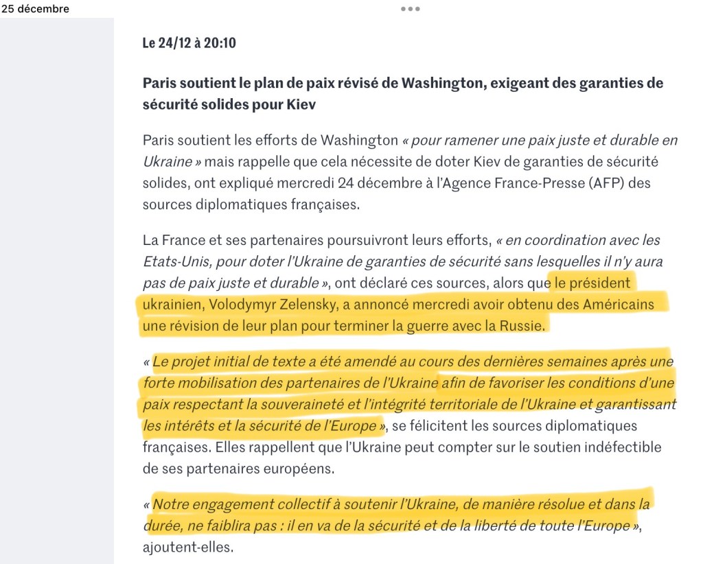 Lire aussi : Guerre en Ukraine, l’intégralité du dernier plan américain en 20 points, présenté par Volodymyr Zelensky (Le Monde)